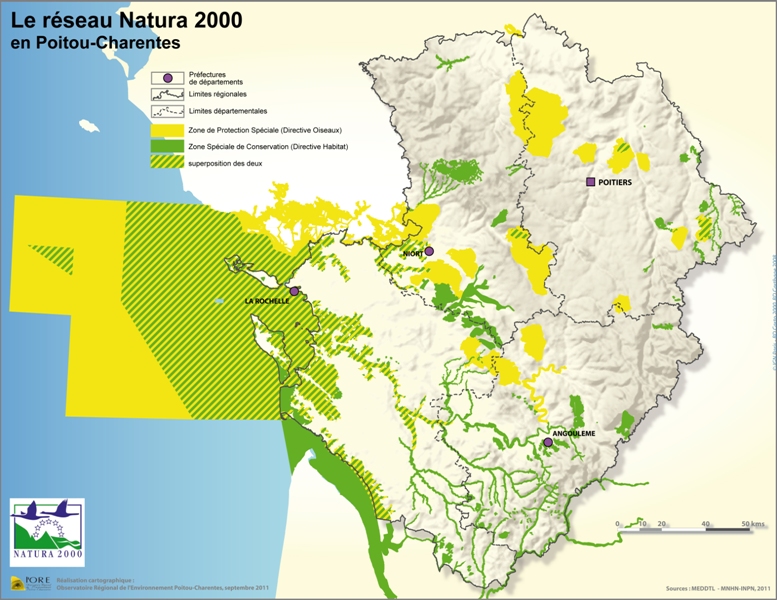 La carte du réseau Natura 2000 en Poitou-Charentes